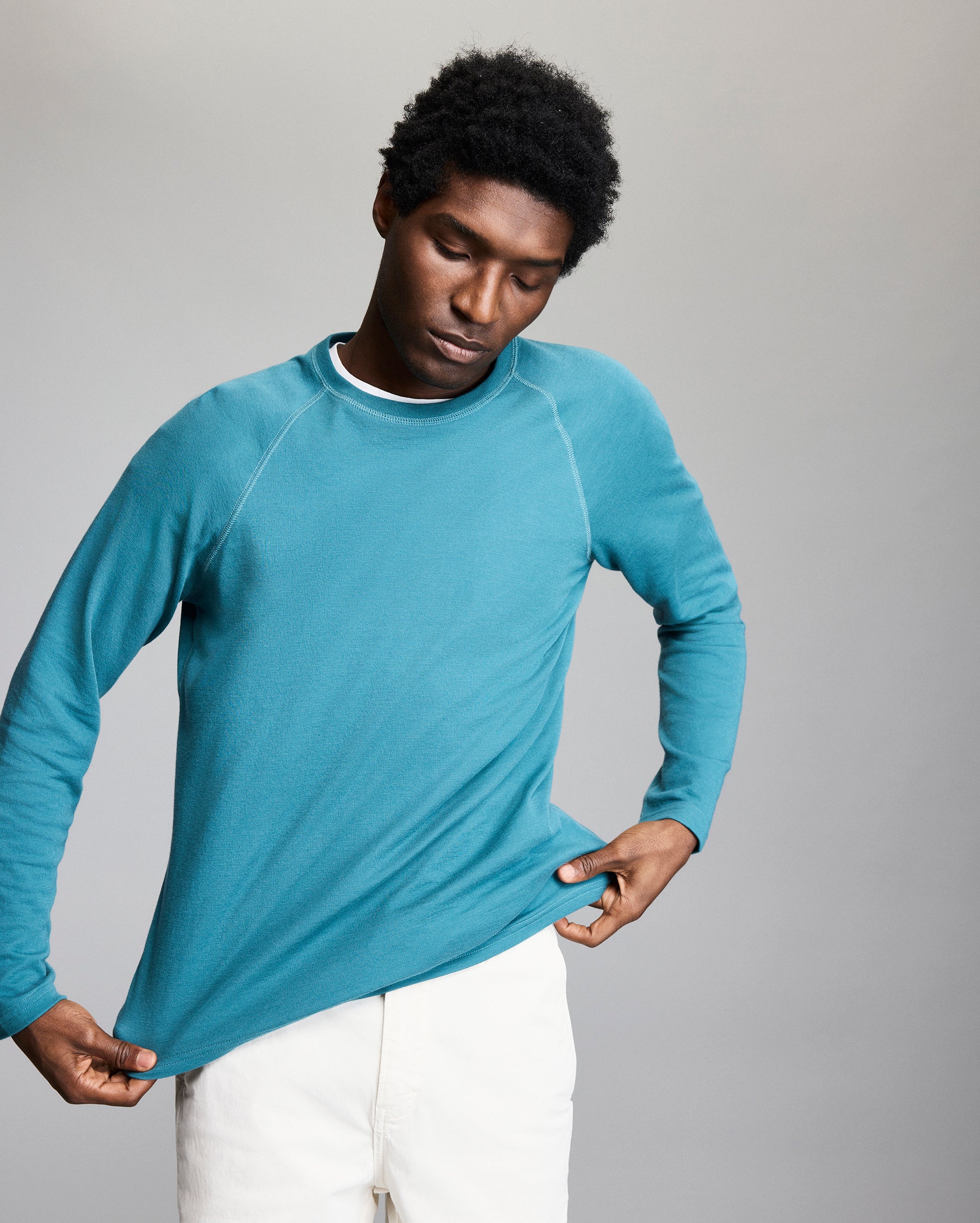 Made with a Pima cotton blend with just the right amount of stretch, giving it an soft hand feel, this raglan sleeve crewneck feels great on the body and can be worn on its own or as an elevated layering piece. Finished with thoughtful details like cover-stitch seams and twill tape reinforcement at the back neck.
