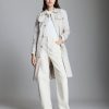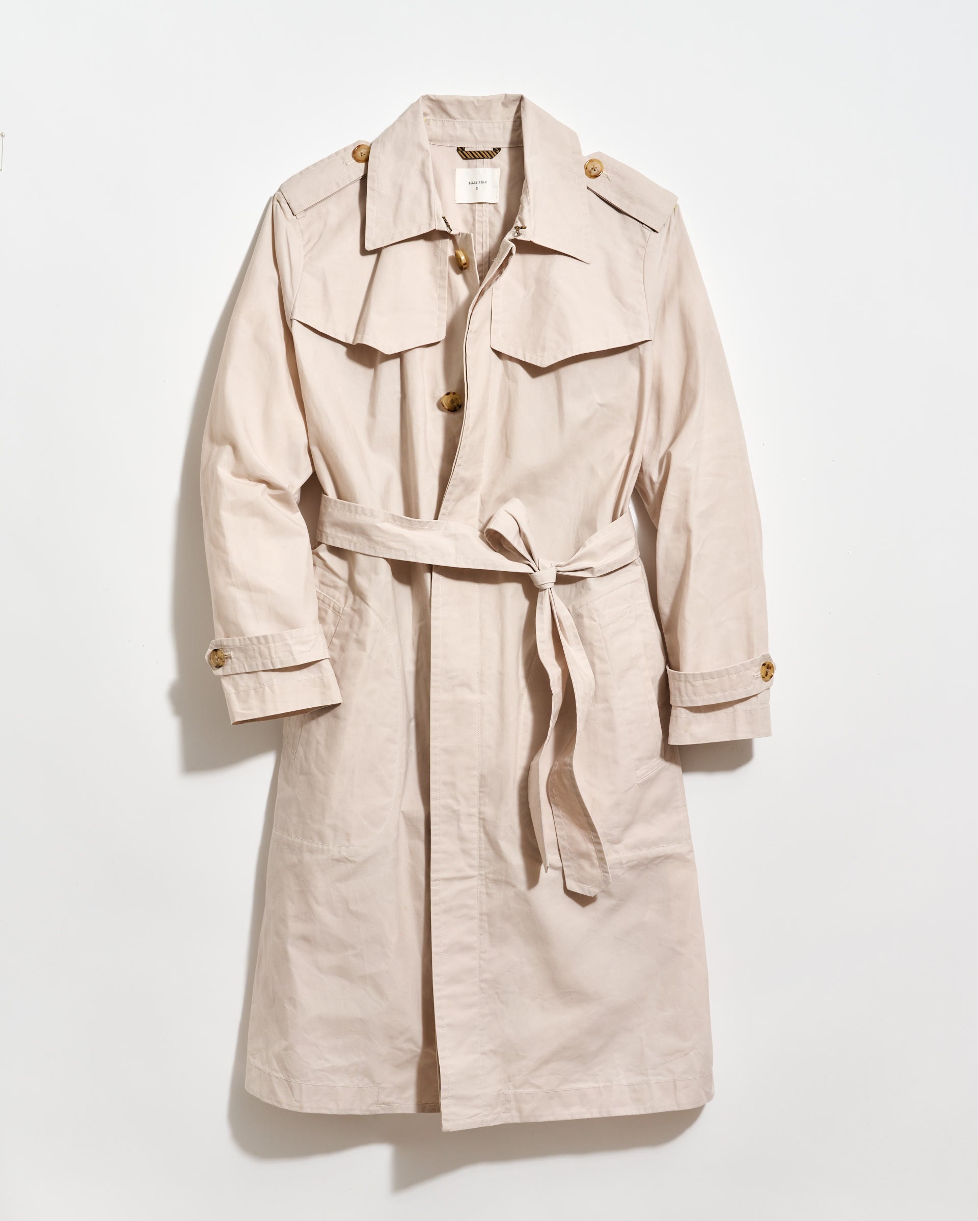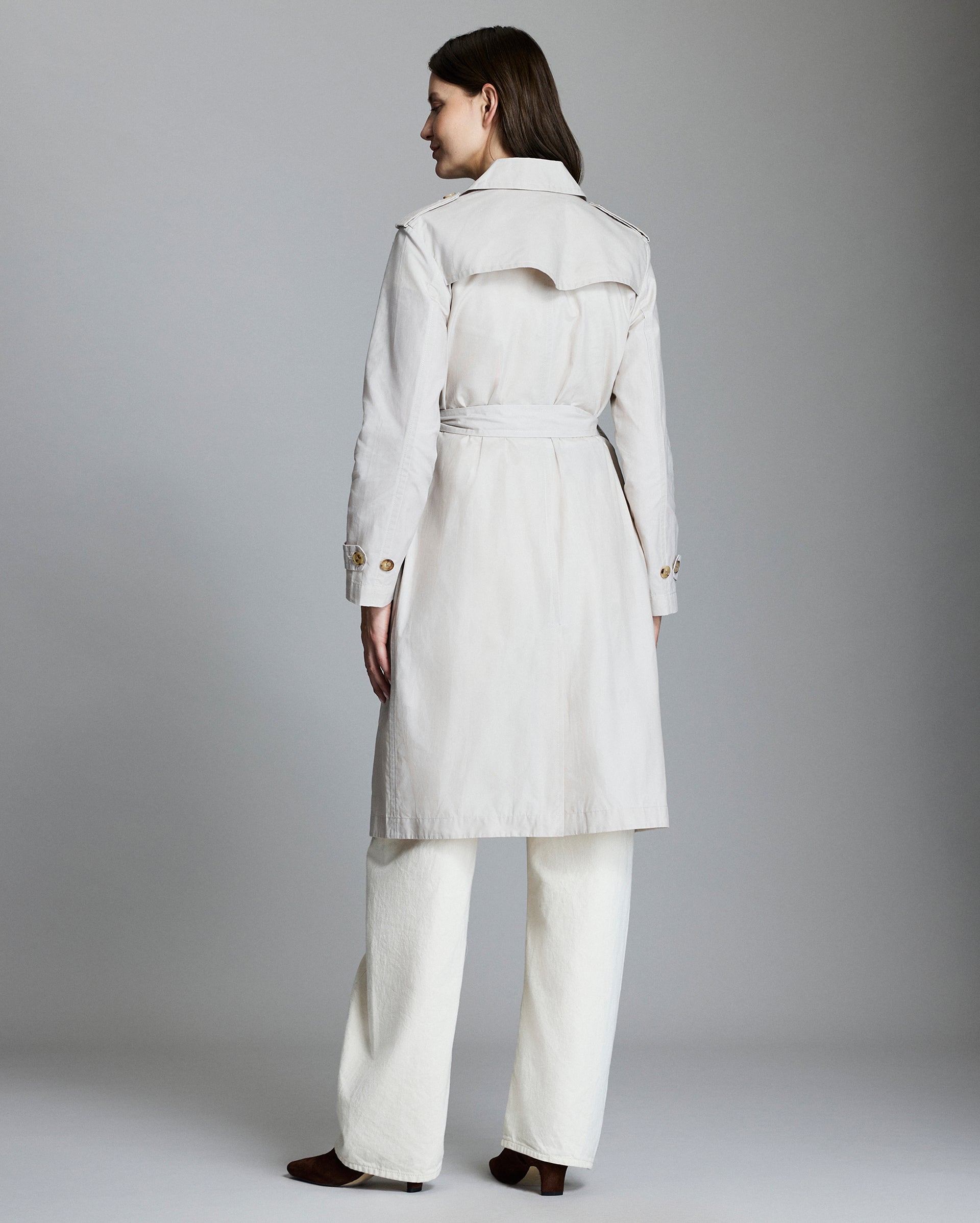 A trench coat goes with everything. This sophisticated, timeless style is ready to elevate any wardrobe choice. It’s not double breasted, so the closure is relaxed and loose to pull on over a jacket or simple tee and jeans. Our take on the classic coat also skips the dramatic lapel and instead offers a storm flap with our signature spade pocket. The piece is also cast in special fabric from our friends in Scotland at Halley Stevensons; inspired by the women’s coats of the 1960s.